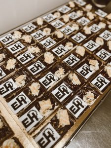 Ein weiteres Highlight war die süße Begleitung einer internen Schulung, bei der ich das Dessert-Catering übernehmen durfte. Die Teilnehmer wurden mit einem besonderen Nachtisch überrascht, liebevoll veredelt mit dem Firmenlogo – ein süßes Extra mit Wow-Effekt!
